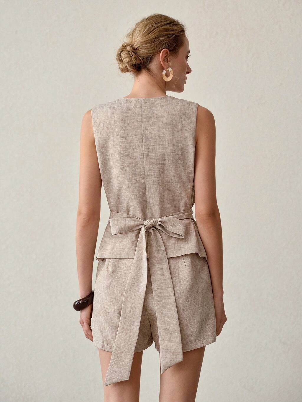 WOMEN'S DECORATIVE BUTTON TIE WAIST LINEN-LIKE TANK TOP