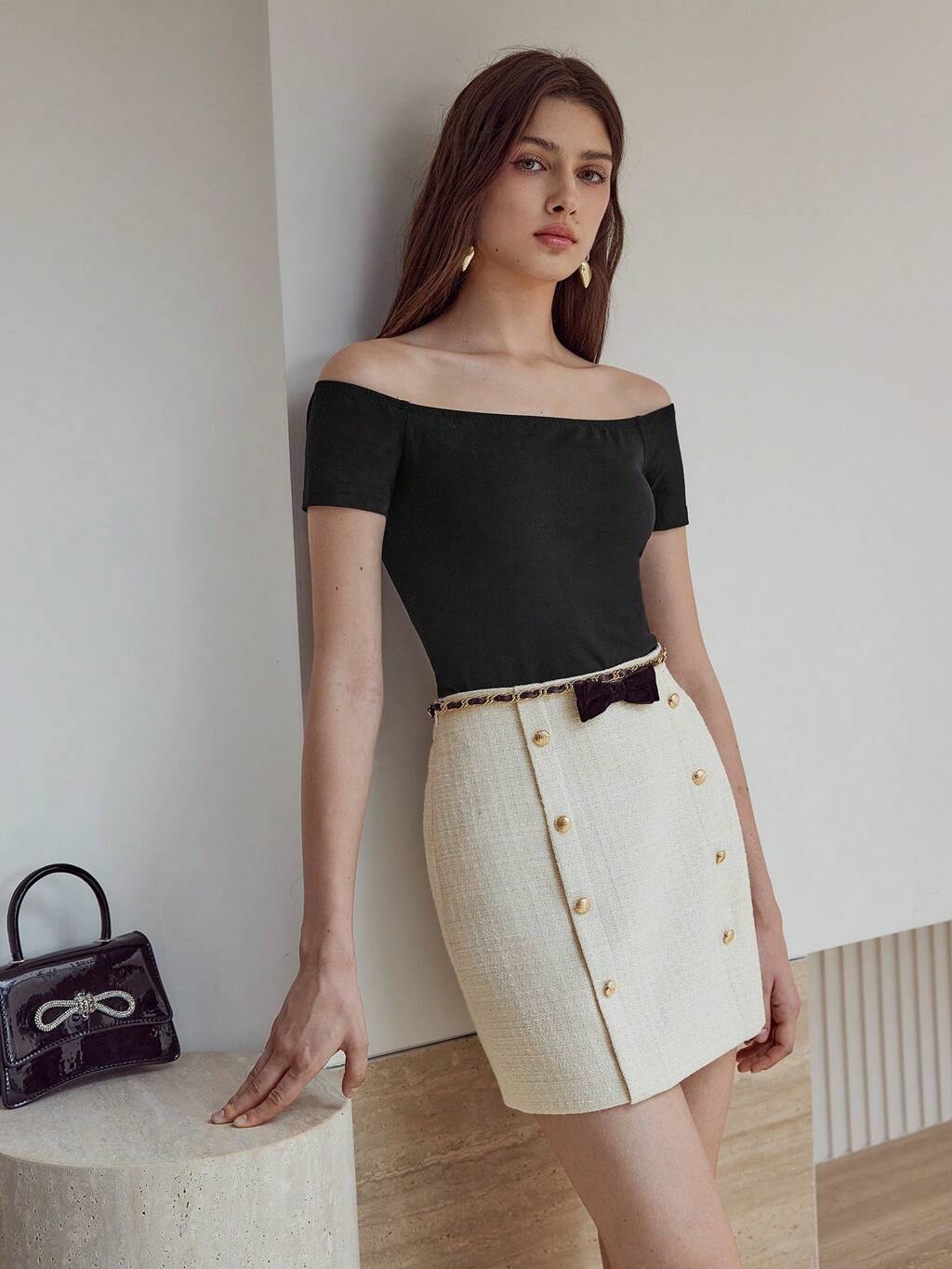 MOTF STUDIO BOW DECOR BUTTON SKIRT