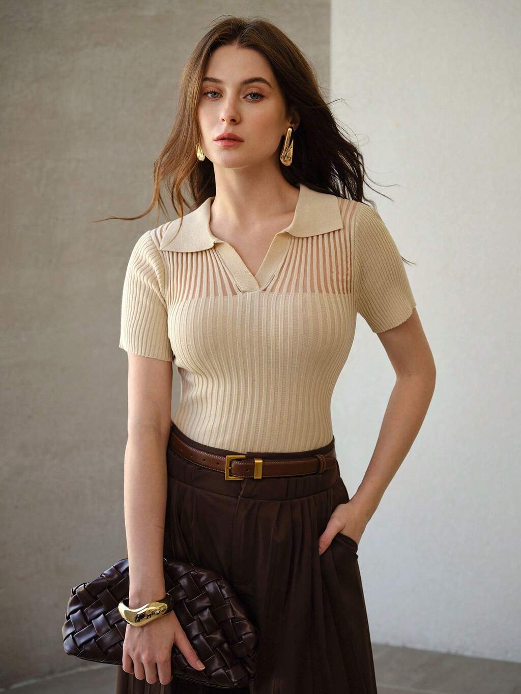 WOMEN'S HOLLOW OUT KNIT SHORT SLEEVE T-SHIRT, NEW ARRIVAL SUMMER SLIM FIT KNIT TOP