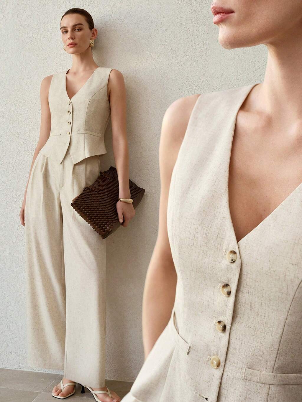 WOMEN'S LINEN BLEND CASUAL DATE WAISTCOAT