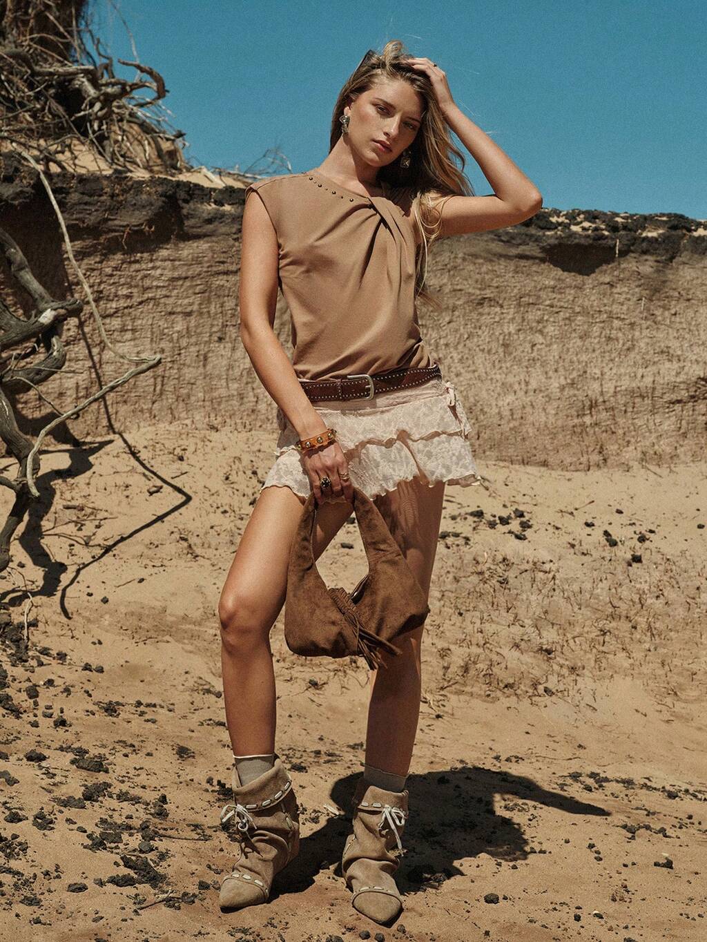 MOTF STUDIO WOMEN'S RIVET TWIST ASYMMETRIC T-SHIRT, SPRING/SUMMER