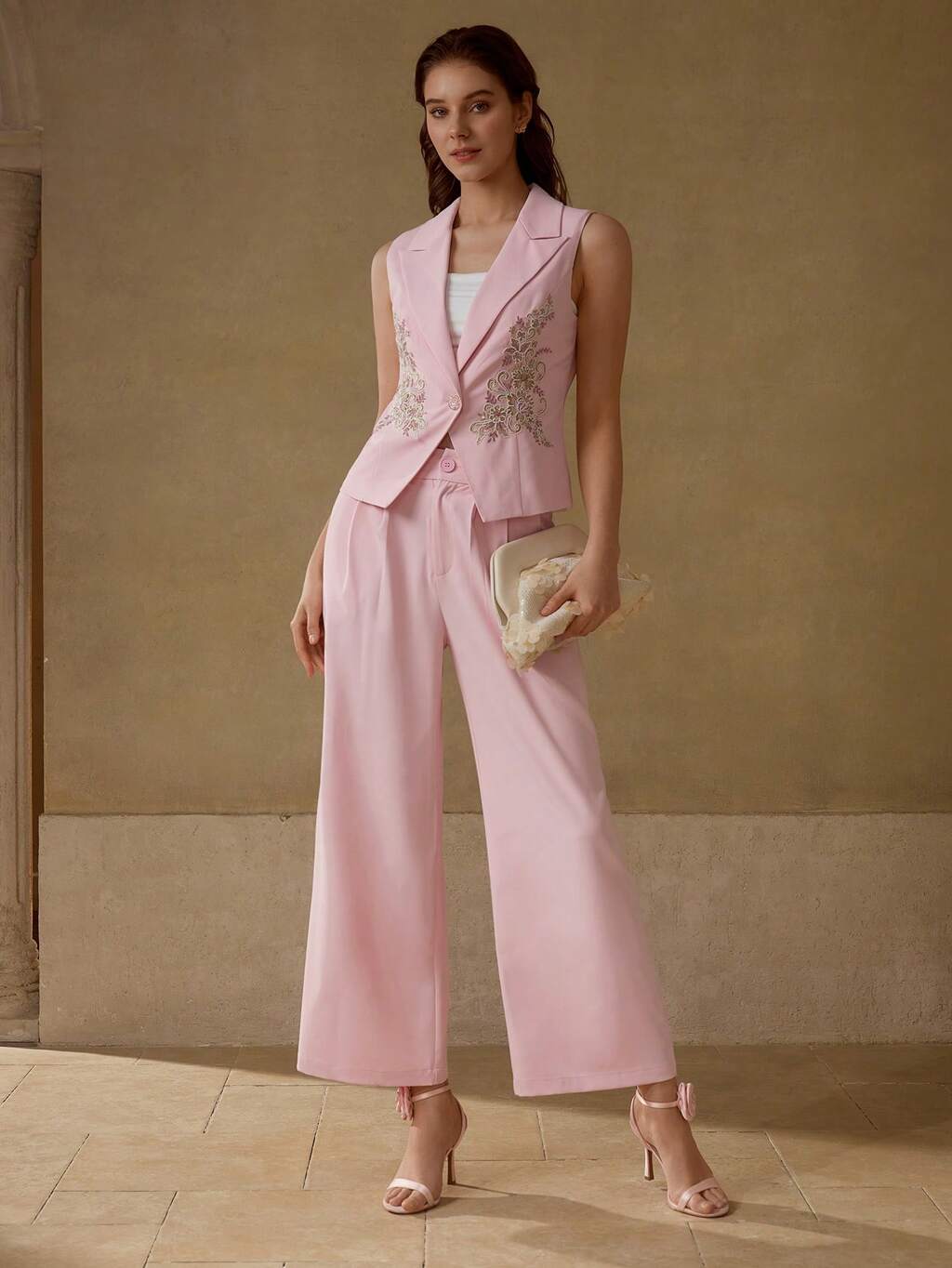 WOMEN'S BLUE OMBRE RHINESTONE EMBELLISHED STRAIGHT LEG SUIT PANTS