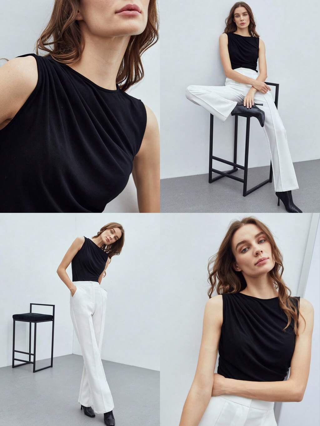 WOMEN'S SUMMER WHITE CONTRAST RIB KNIT SLEEVELESS ELEGANT VERSATILE TANK TOP