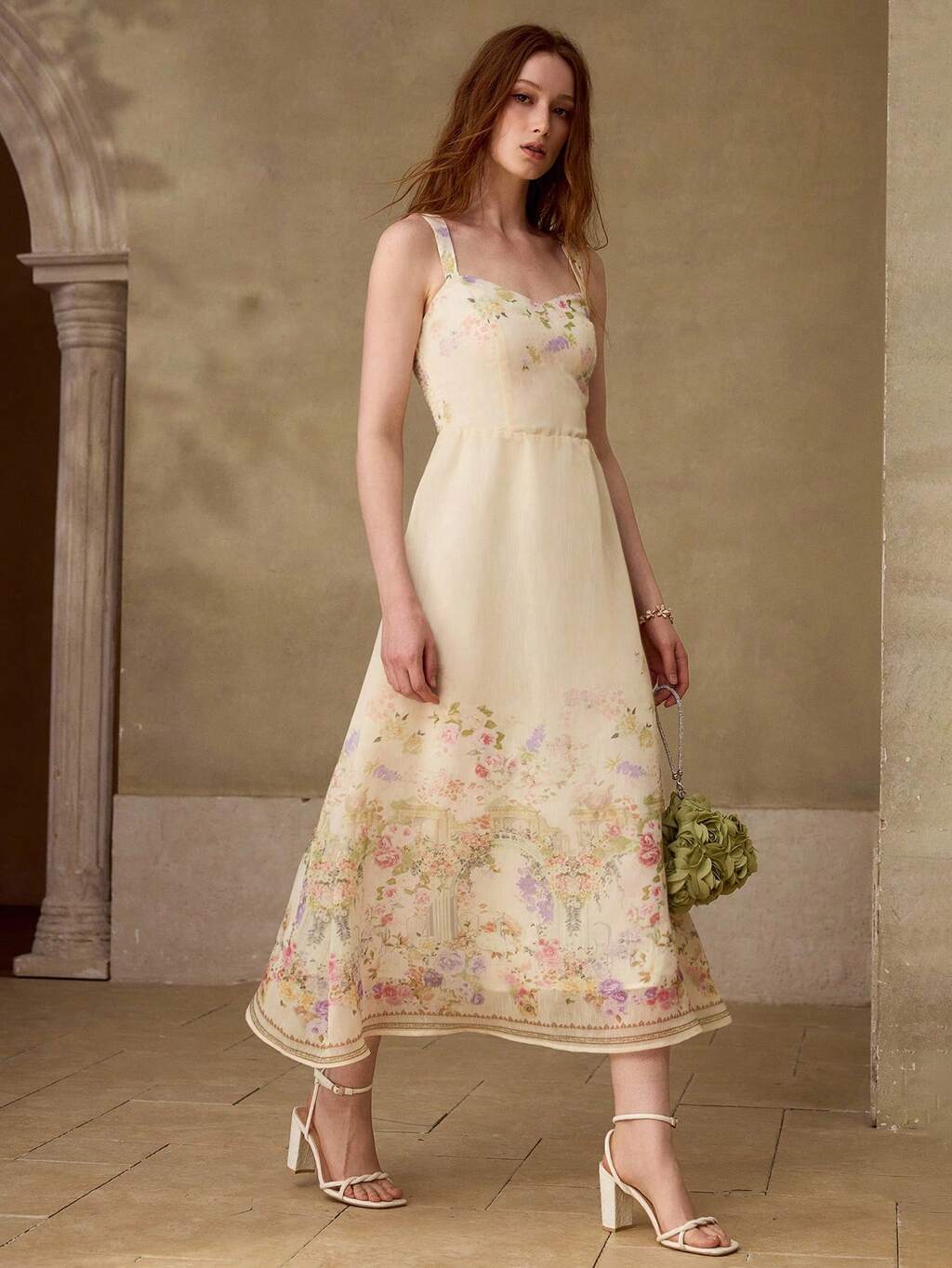 WOMEN'S ELEGANT EXCLUSIVE SPAGHETTI STRAP SLEEVELESS FLORAL PRINT DRESS