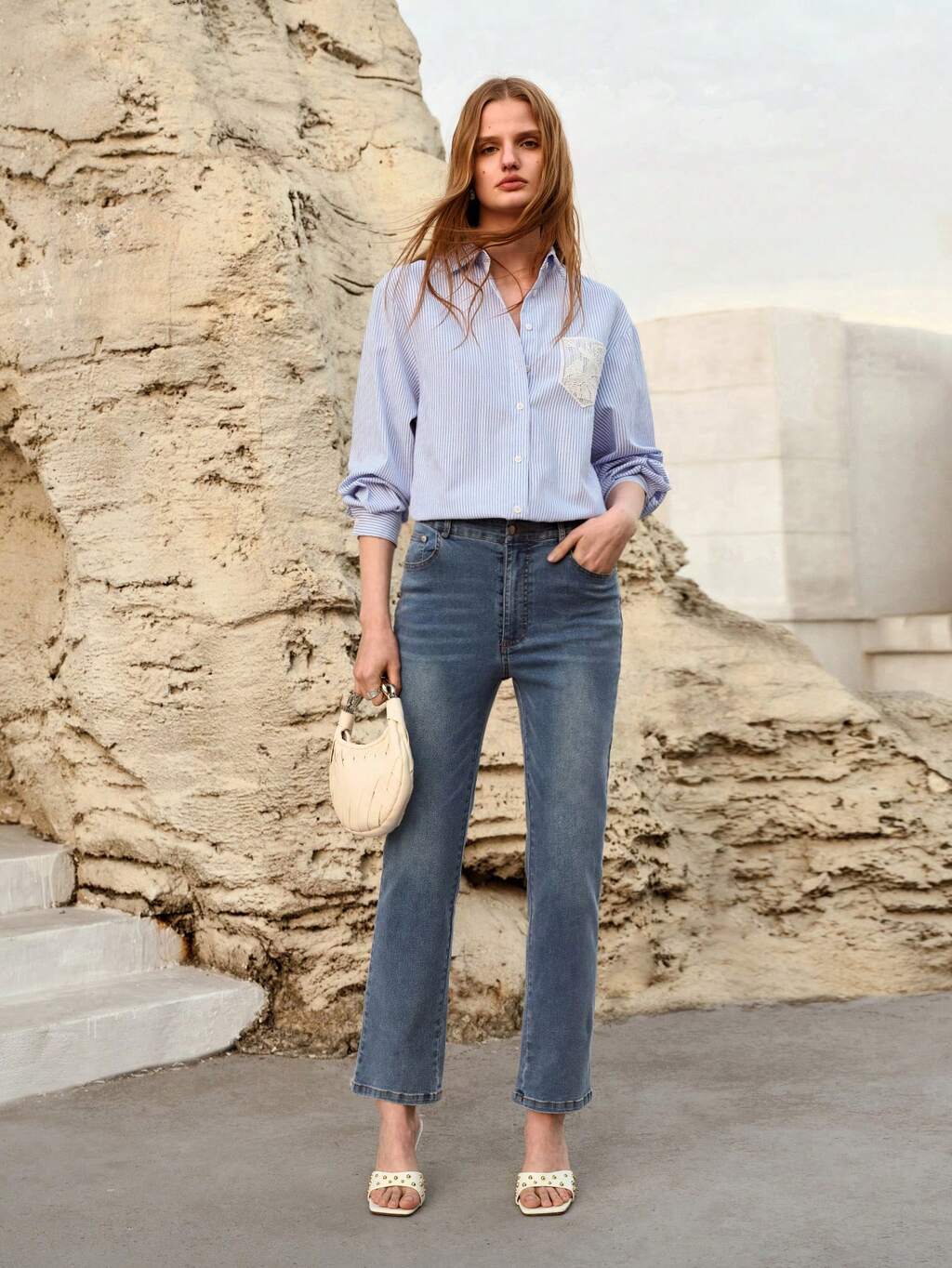 SLANT POCKET WASHED DENIM CROPPED PANTS
