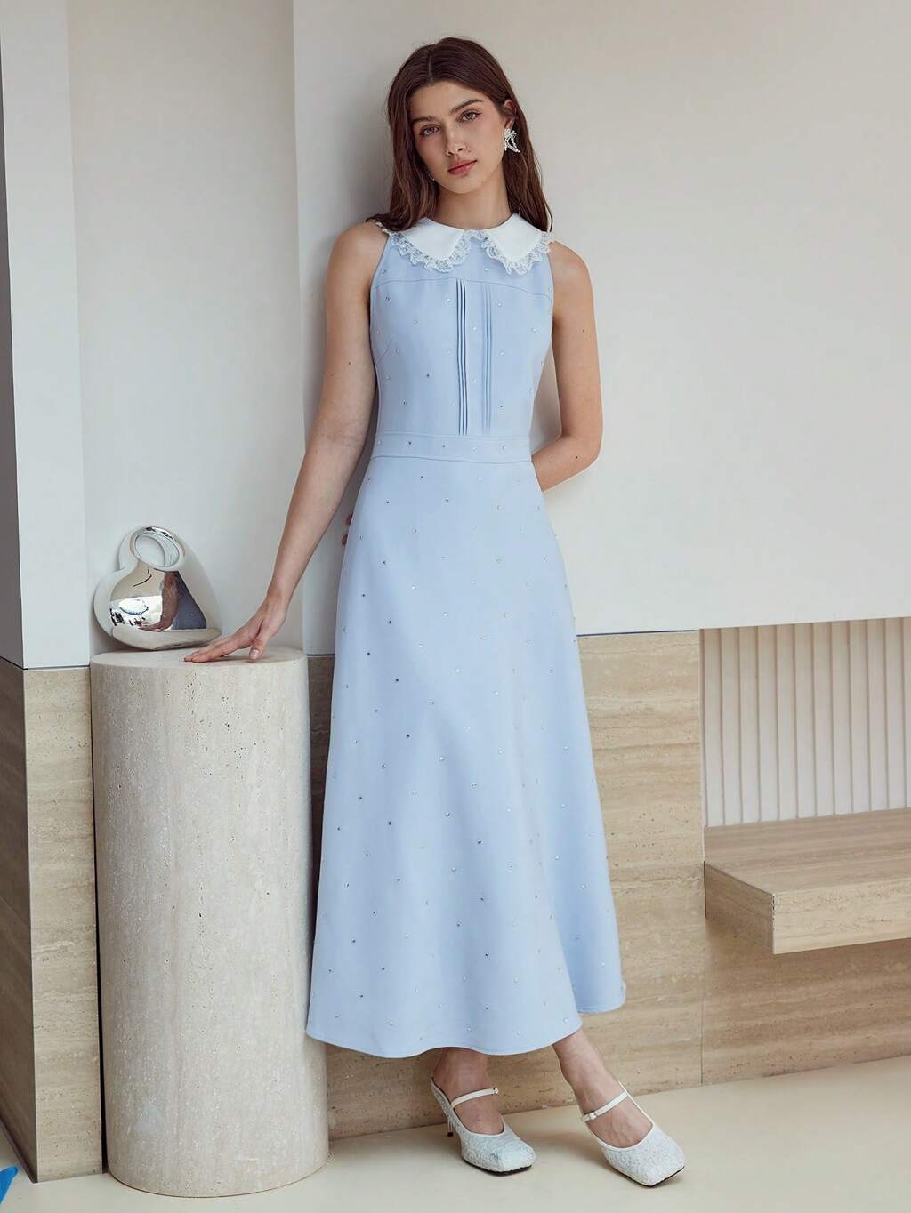 WOMEN'S ROMANTIC LACE PATCHWORK WAIST FLARED DRESS, SPRING/SUMMER