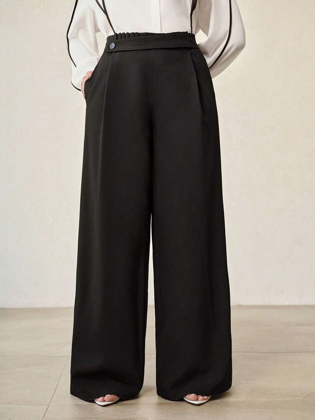 PLUS SIZE WOMEN'S SINGLE BUTTON ASYMMETRICAL HIGH WAIST WIDE LEG PANTS