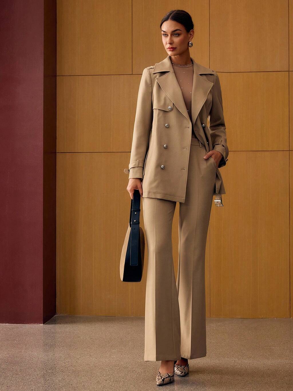 WOMEN'S WAIST TIE DETAIL SLIMMING FLARE LEG PANTS, SPRING/SUMMER