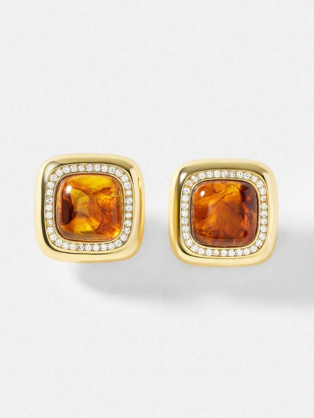 1 PAIR FASHIONABLE RHINESTONE DECOR GOLDEN SQUARE CLIP EARRINGS