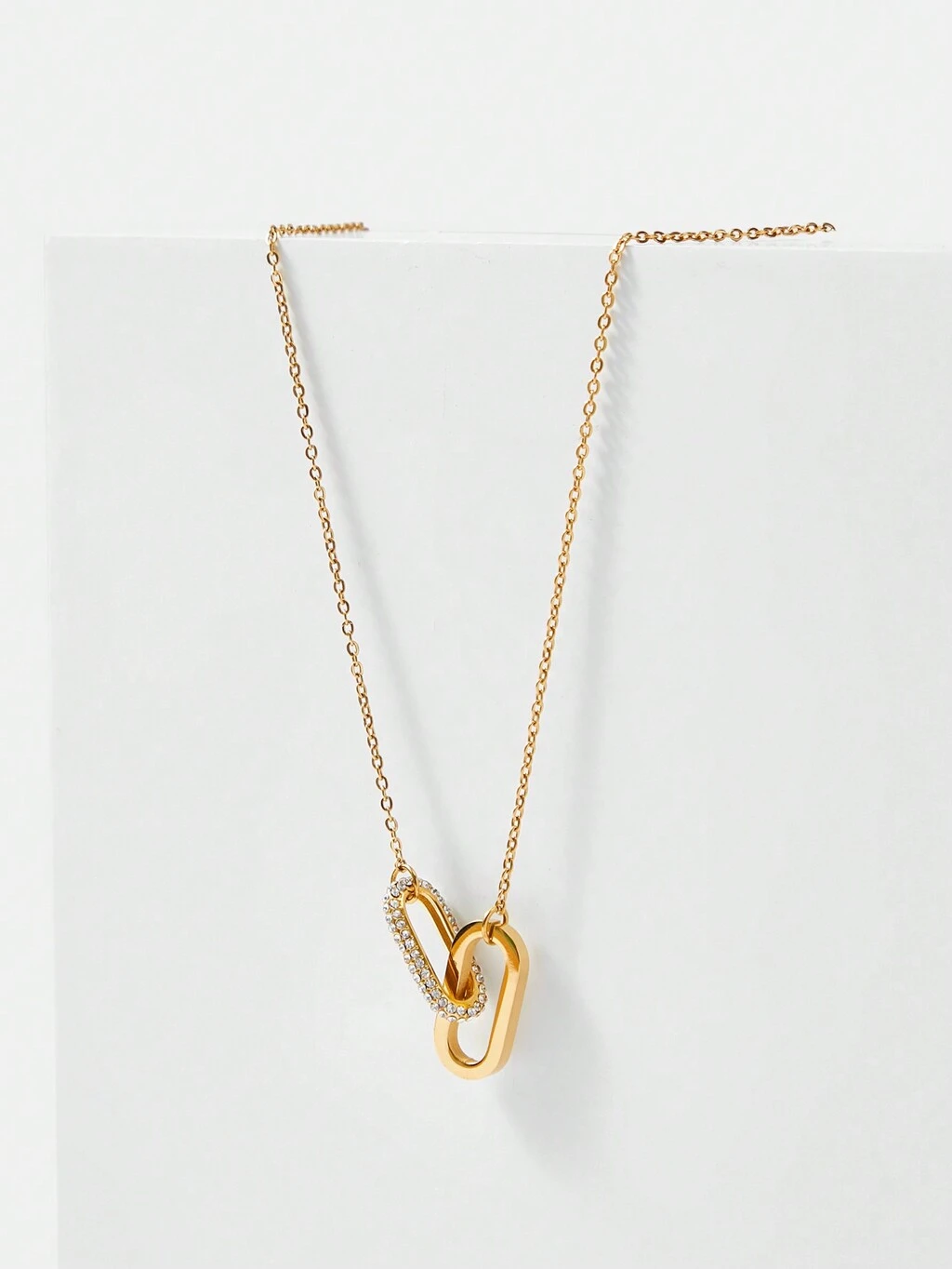 RHINESTONE DECOR GEOMETRIC PENDANT NECKLACE