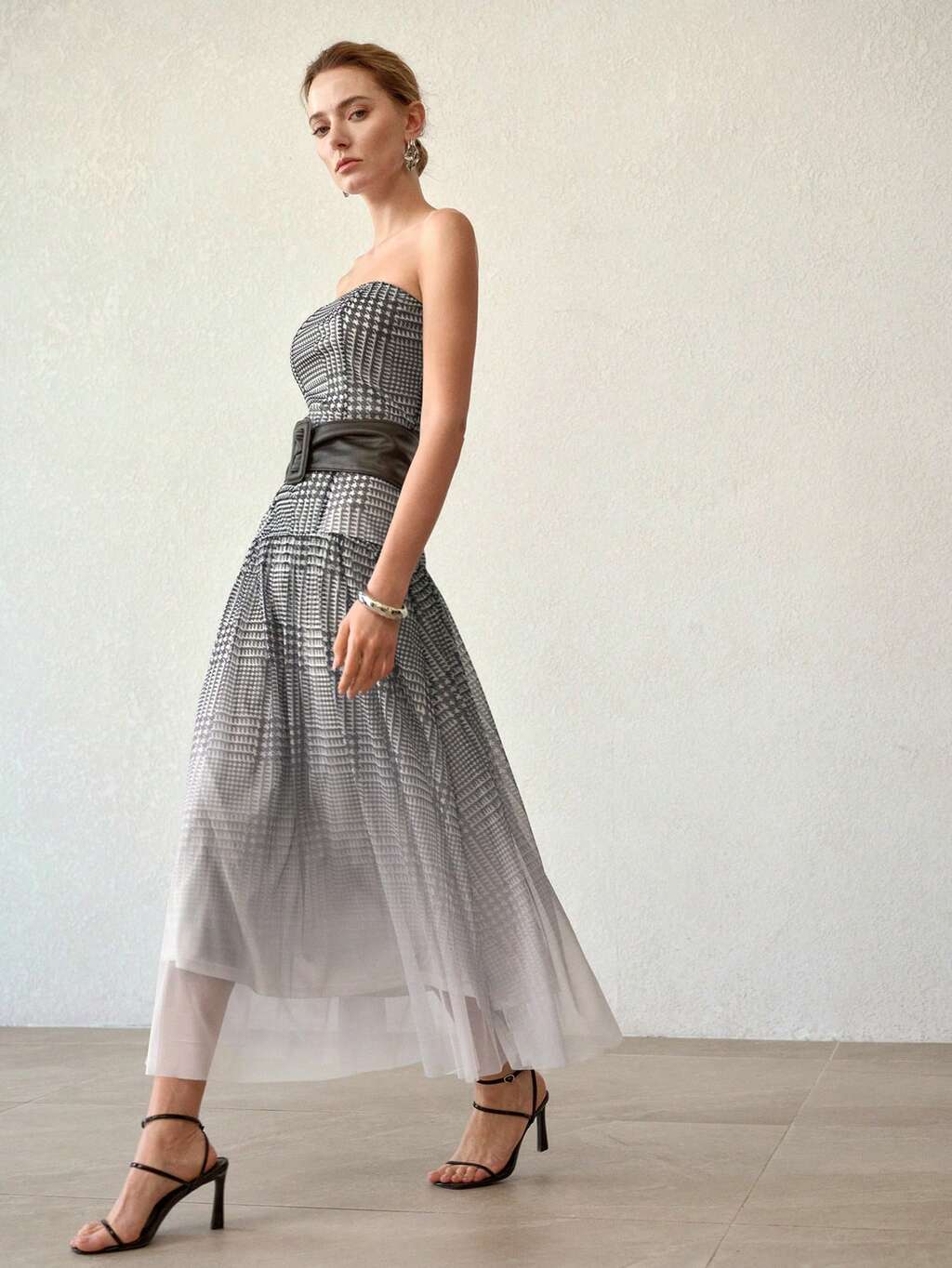 PLAID PRINT LONG TUBE DRESS