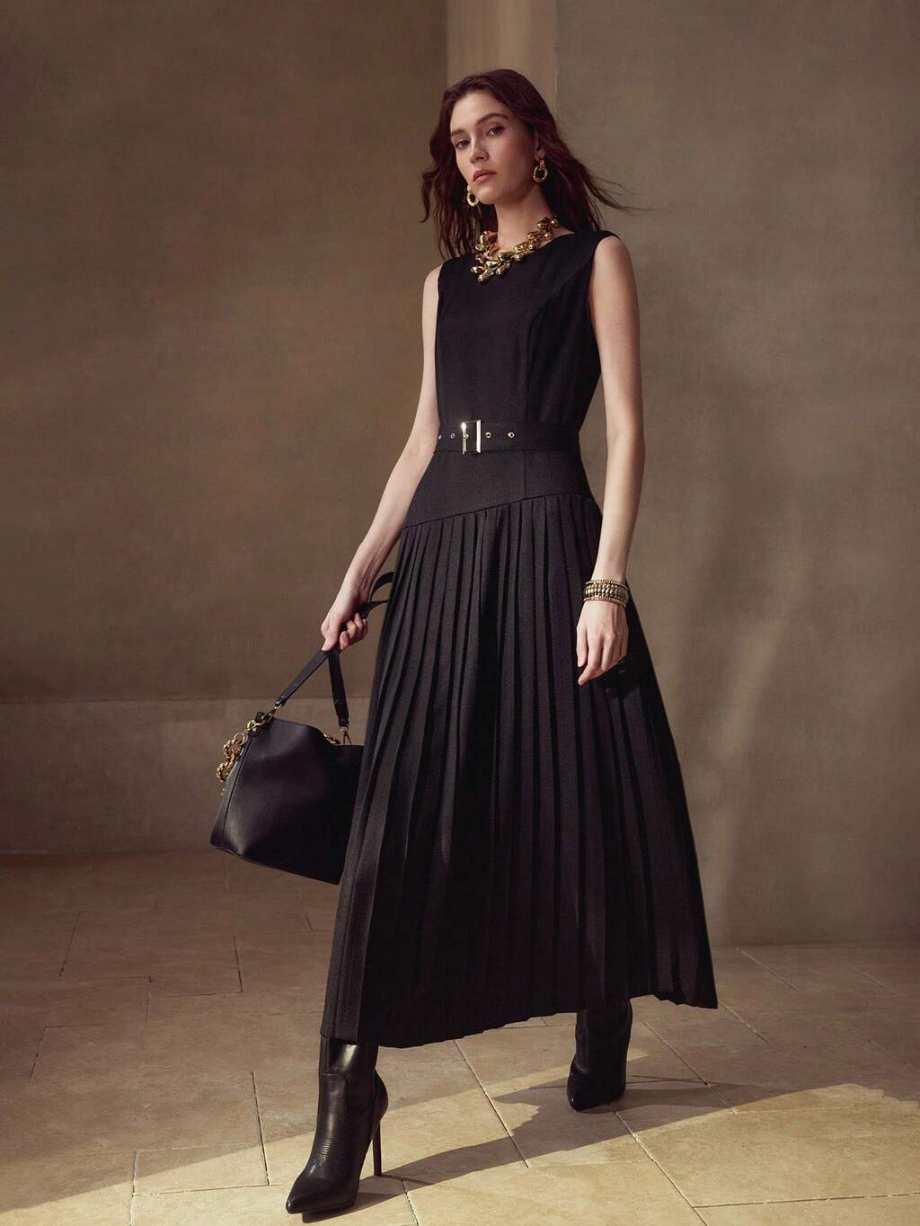 WOMEN'S PLEATED PATCHWORK ELEGANT DRESS