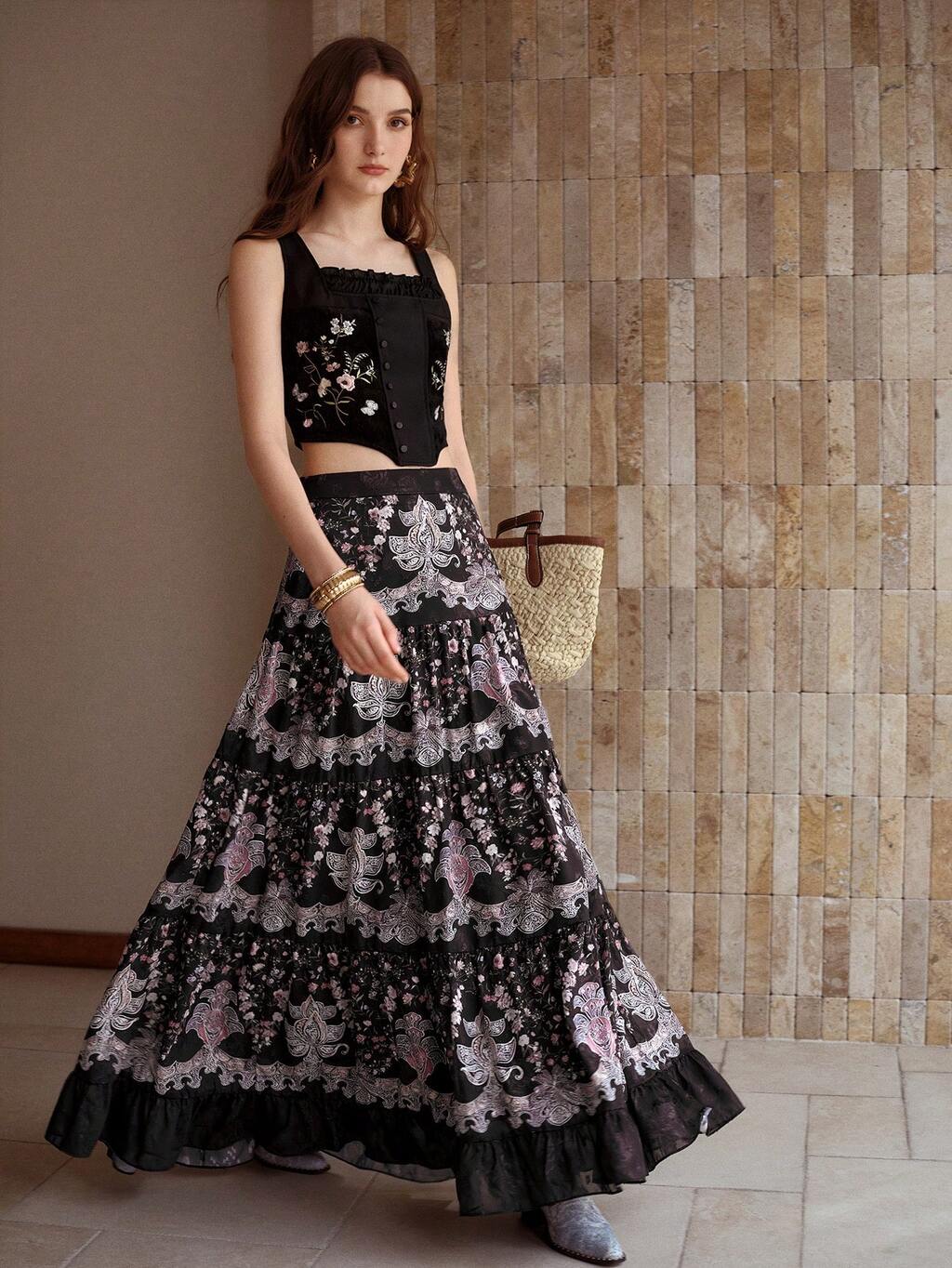 NEW ARRIVAL SPRING/SUMMER BEIGE FLARED SKIRT, PASTORAL STYLE VERSATILE COMMUTER SKIRT FOR WOMEN
