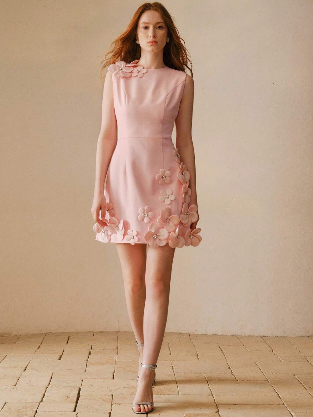 WOMEN'S SHORT RHINESTONE EMBELLISHED 3D FLORAL DRESS