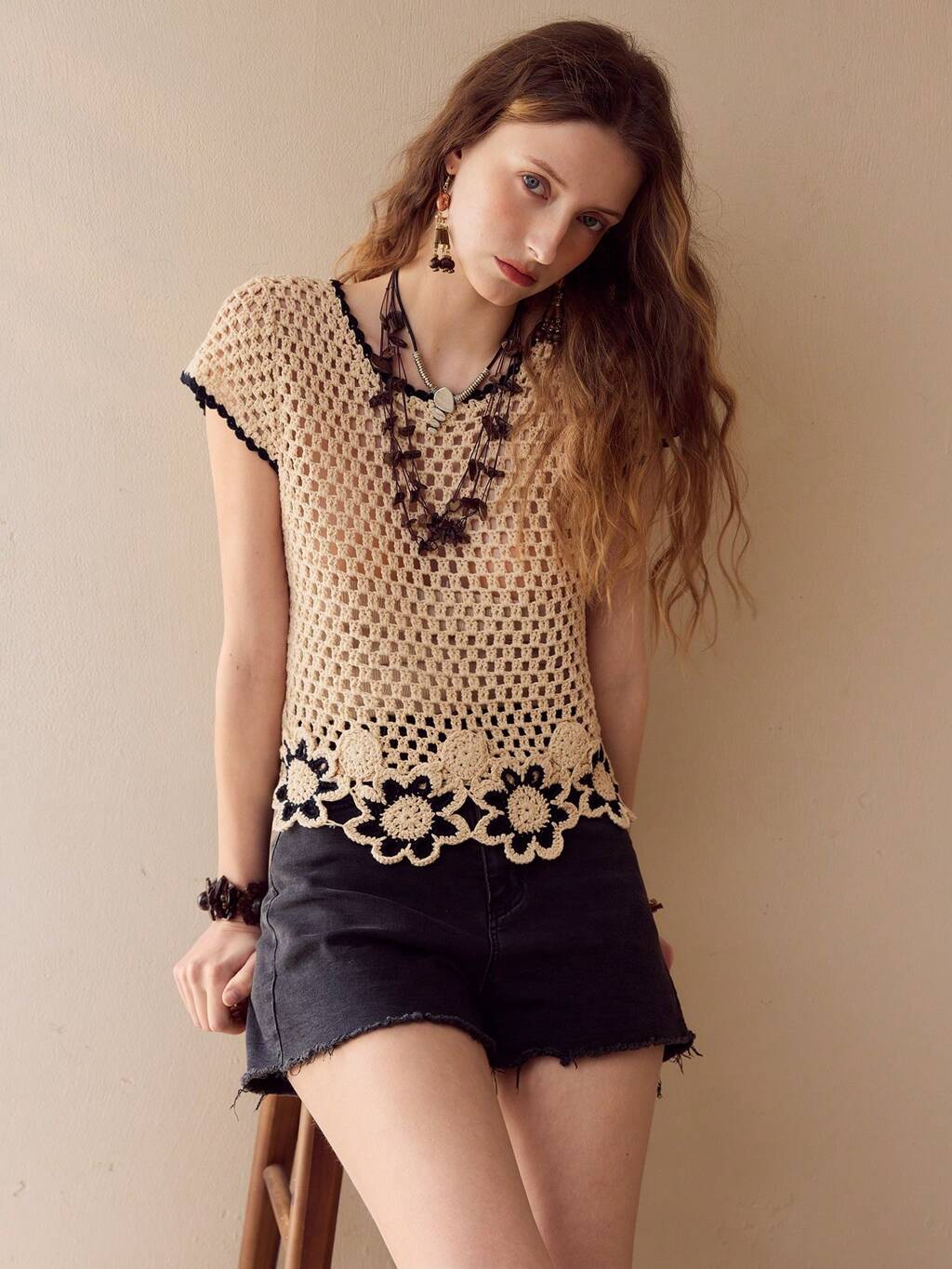 MOTF STUDIO TOP DE PUNTO CON FLECOS DE ENCAJE A GANCHILLO PARA MUJER, PRIMAVERA/VERANO