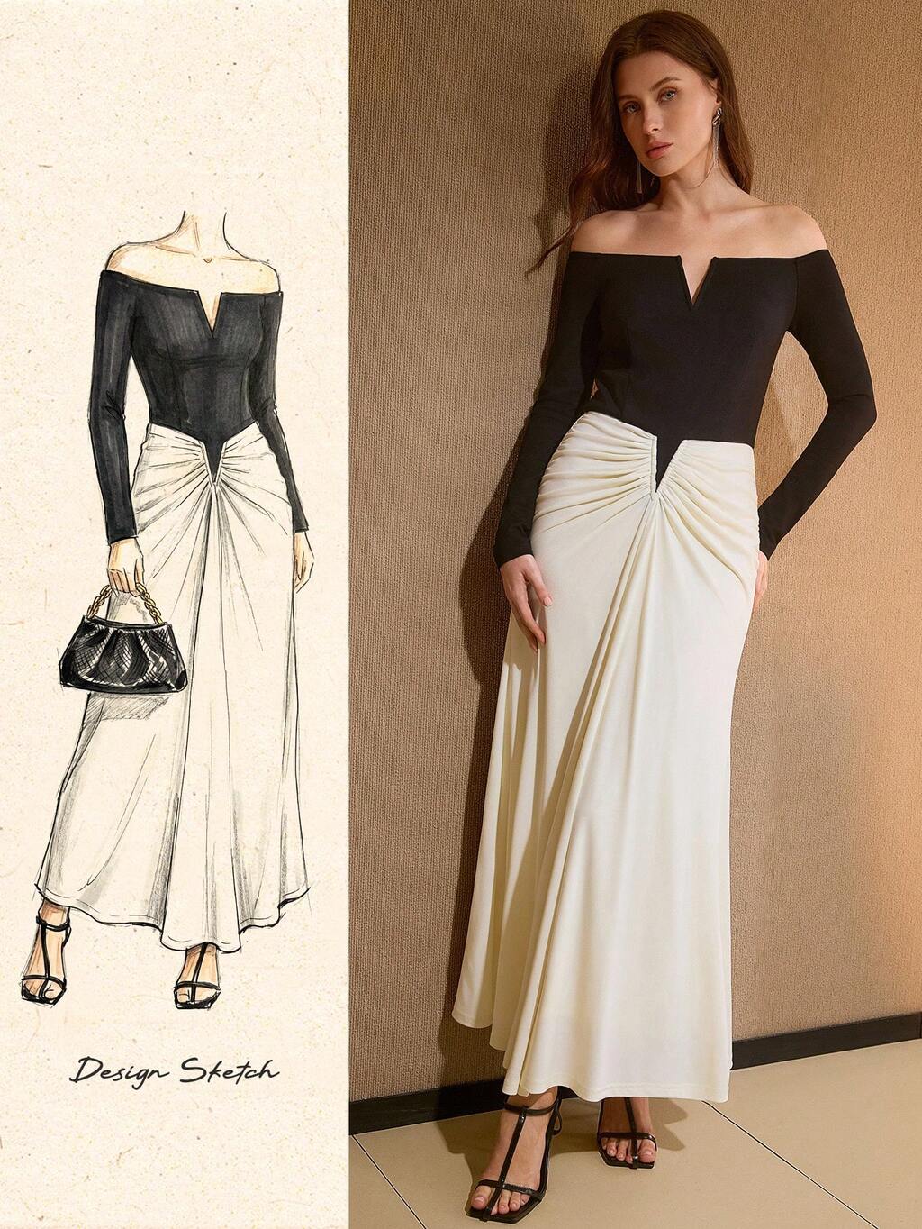 WOMEN'S ELEGANT OFF SHOULDER RUCHED BIAS CUT DRESS
