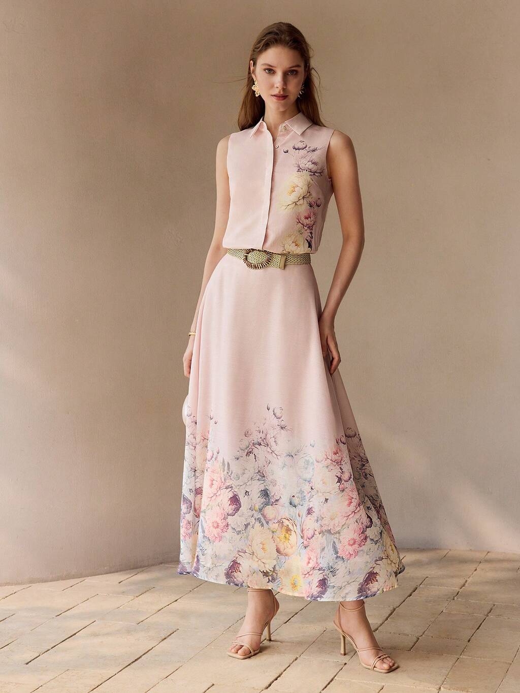 ZEYLAH V-Neck Waist Shaped Floral Print Elegant Sleeveless Maxi Dress, Spring/Summer