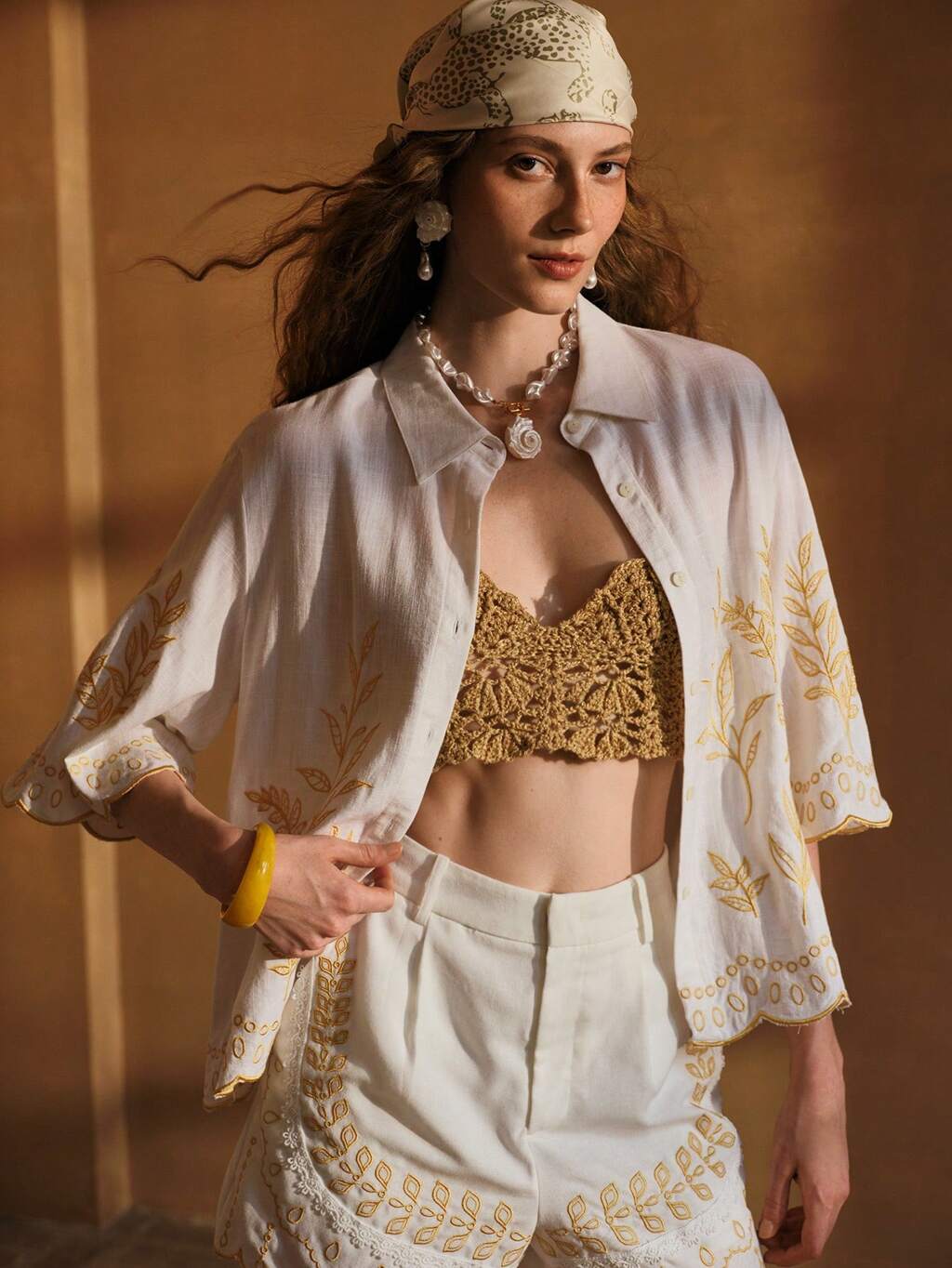 LINEN EMBROIDERY BUTTON UP SHIRT