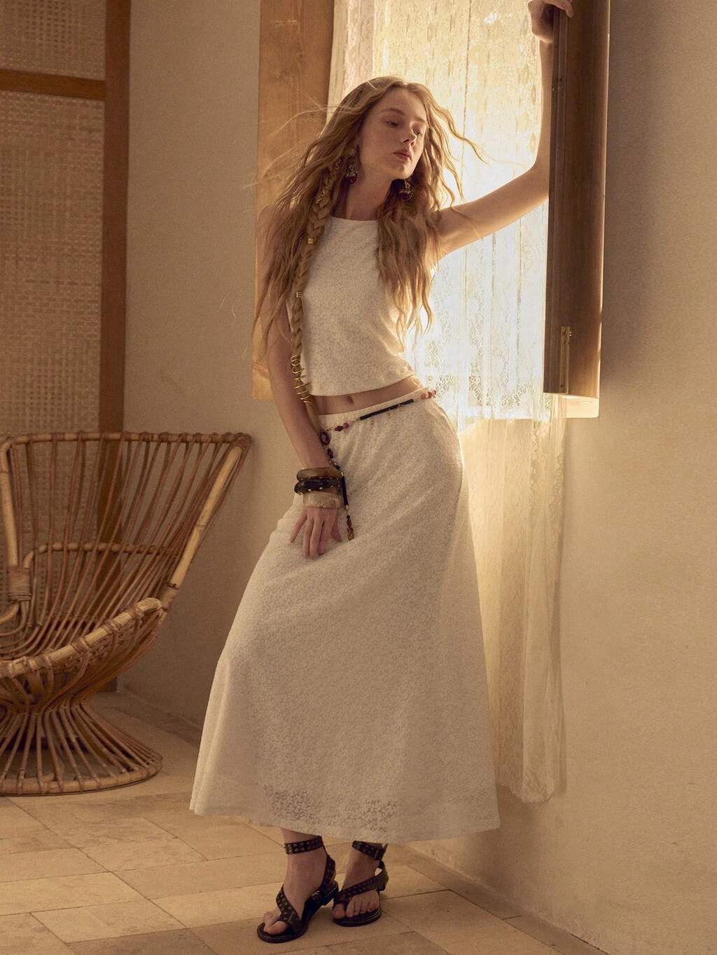 MOTF STUDIO WOMEN'S KNITTED LACE TANK TOP AND SKIRT 2 PIECES SET