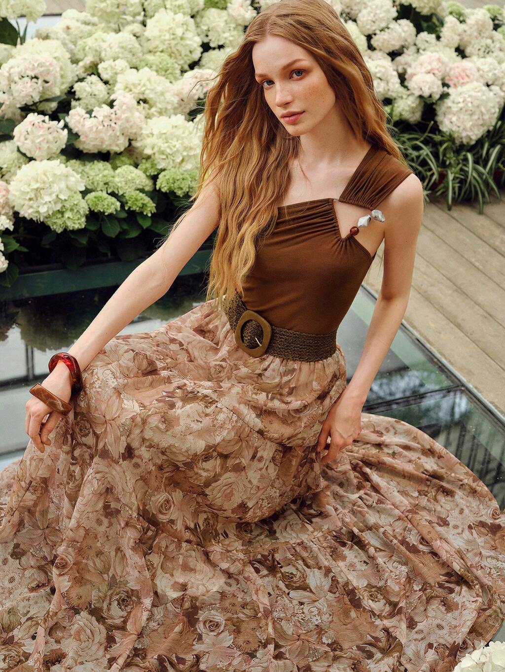 WOMEN'S ELEGANT ALL-OVER PRINT TIERED HEM SKIRT