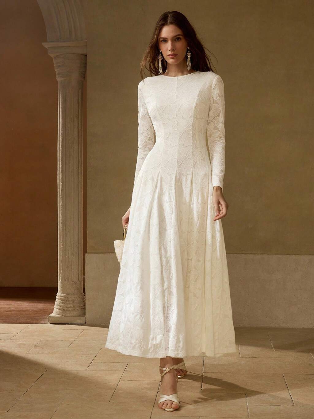 WOMEN'S HALTER NECK PARTY DRESS WITH OPENWORK CROCHET FLORAL PATTERNS, IDEAL FOR WEDDINGS, GALA DINNERS, COCKTAIL PARTIES & FORMAL RECEPTIONS