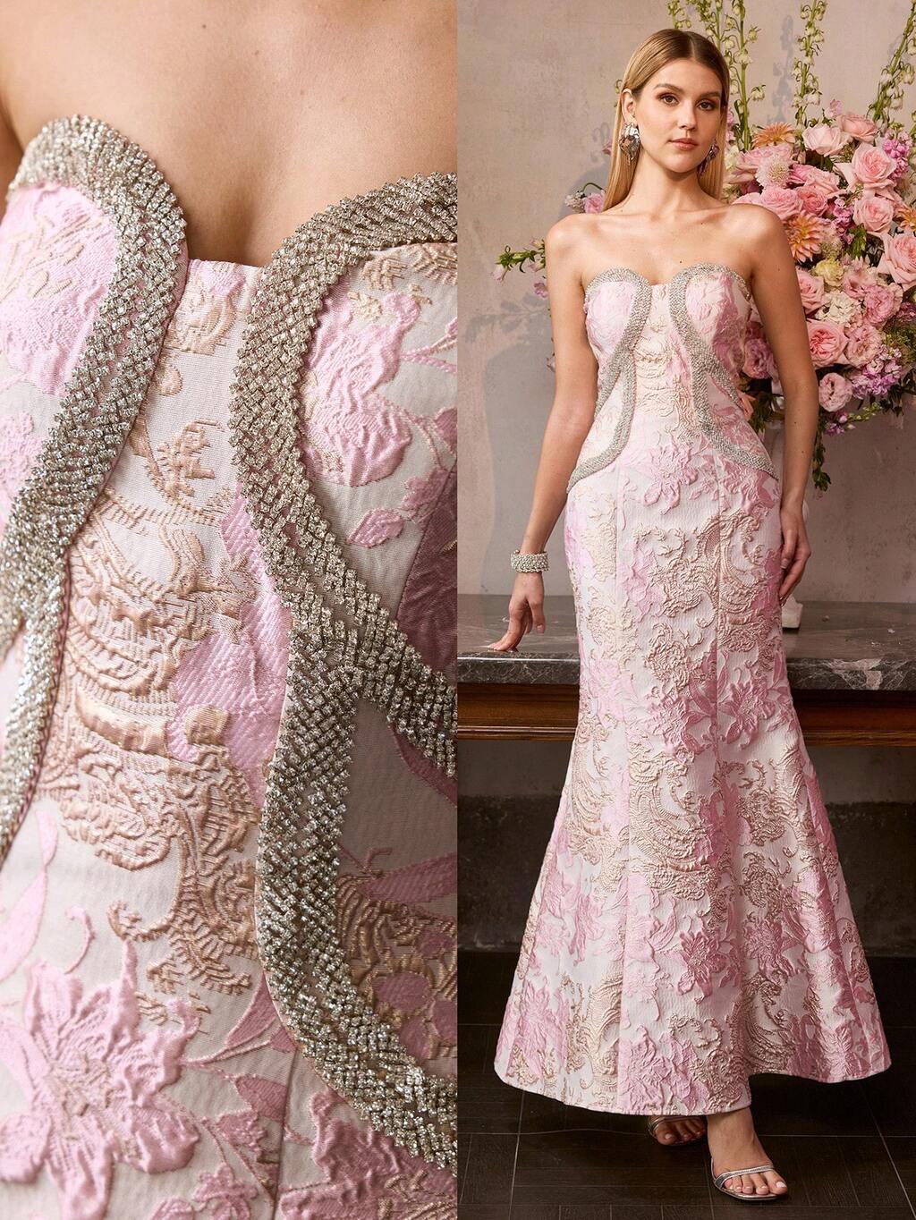 MOTF Soiréza WOMEN'S LONG RHINESTONE EMBELLISHED JACQUARD FABRIC STRUCTURED DESIGN COCKTAIL DRESS