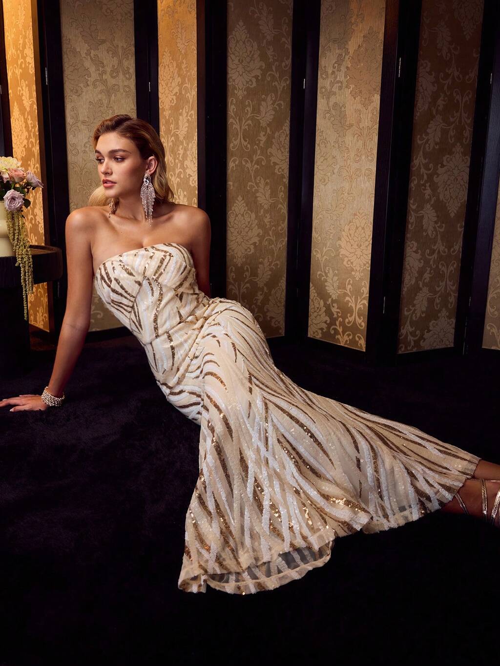 MOTF Soiréza ELEGANT & EXQUISITE STRAPLESS METALLIC TEXTURE COCKTAIL DRESS FOR GALA, PARTY, BANQUET
