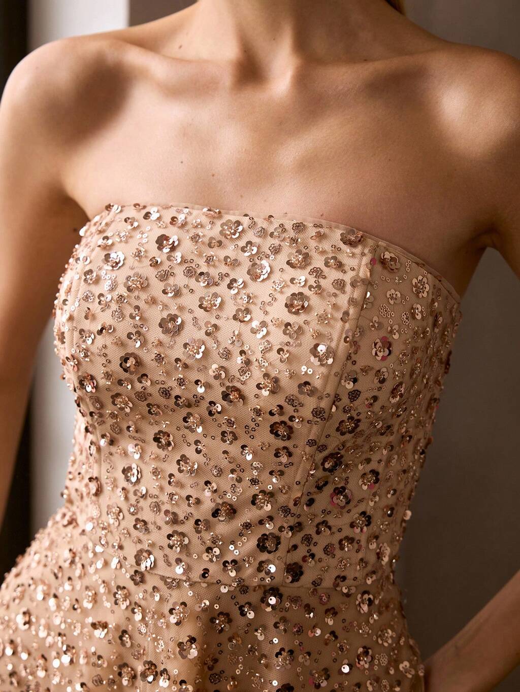 WOMEN'S BEADED CONTRAST SEQUIN STRAPLESS DRESS, STRAPLESS, SPRING/SUMMER