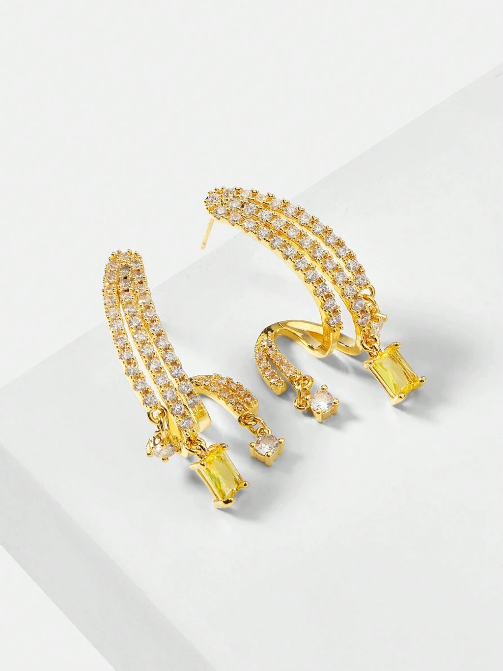 18K GOLD PLATED FASHIONABLE ZIRCONIA DANGLE EARRINGS