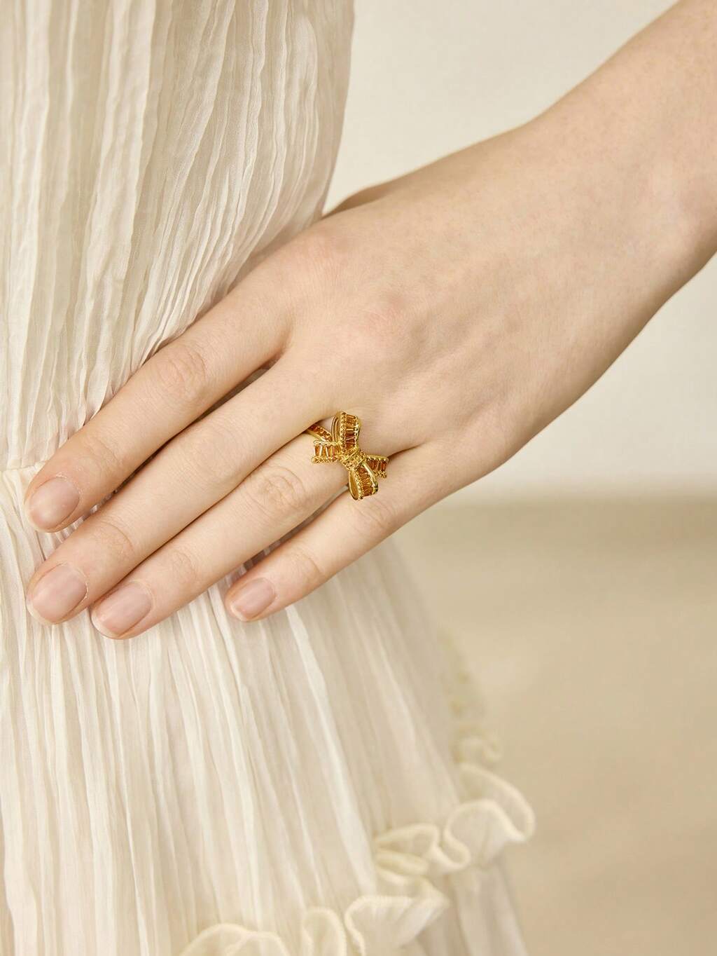 18K GOLD PLATED MICRO-INLAID ZIRCONIA OPEN RING