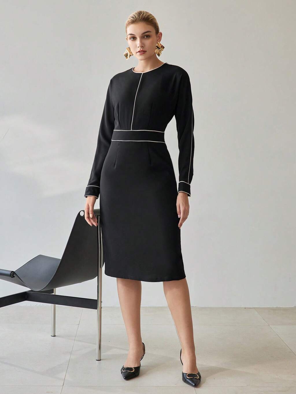 CONTRAST PIPING SLIM FIT MIDI DRESS