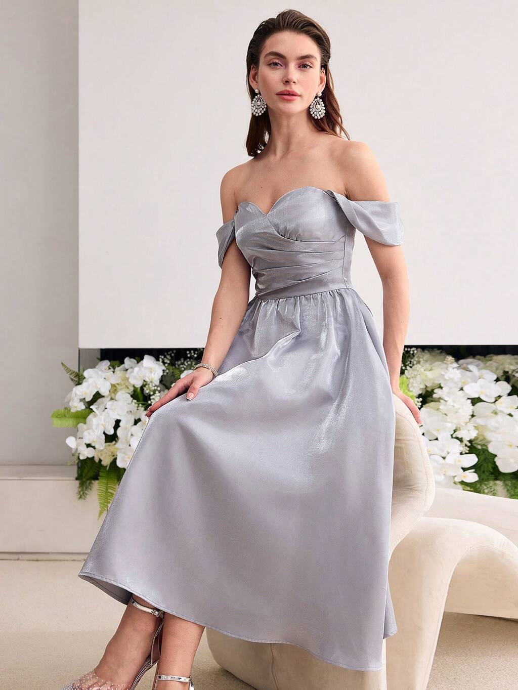MOTF Soiréza RUCHED WAIST OFF SHOULDER A-LINE MIDI DRESS