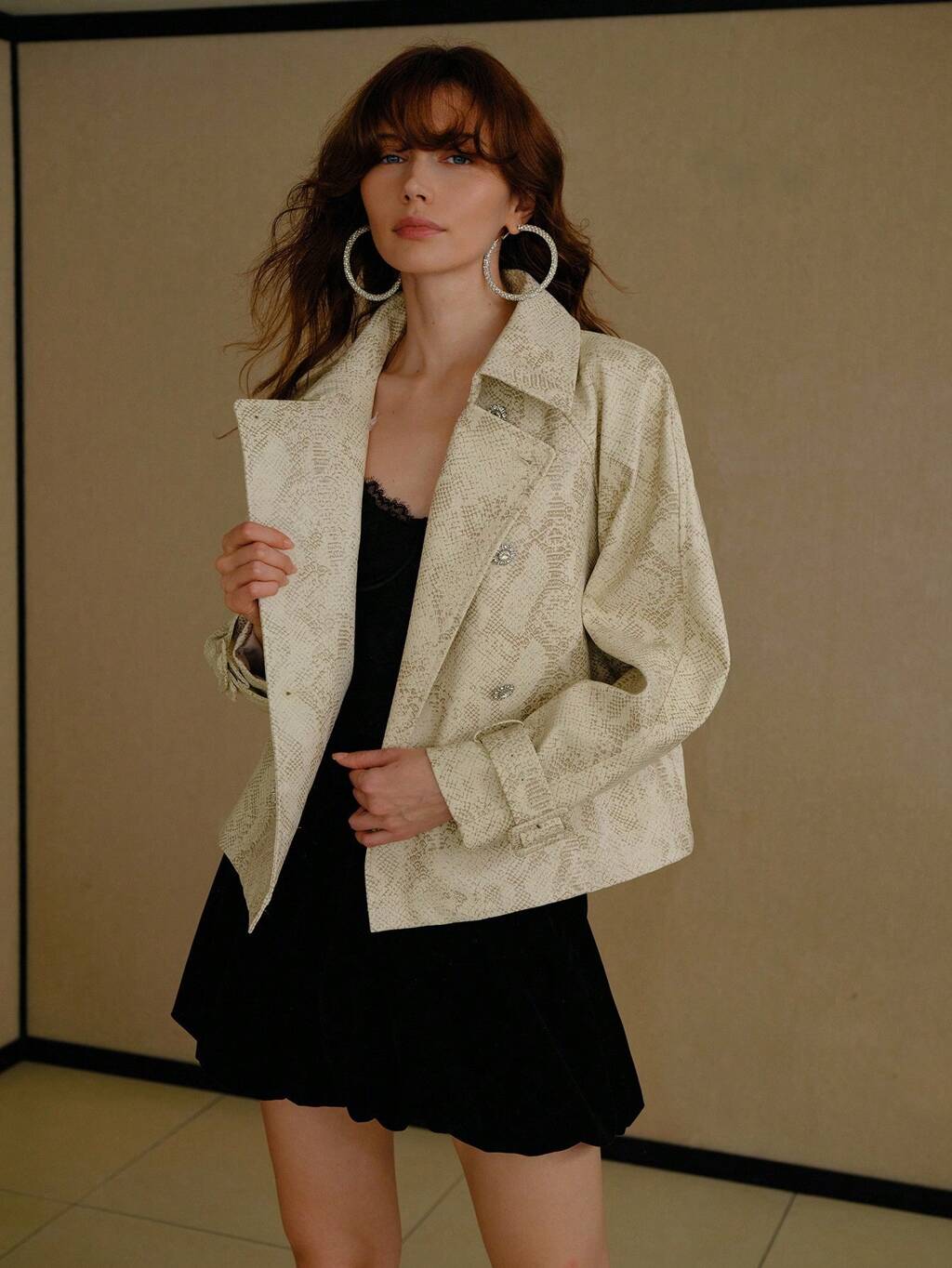MOTF STUDIO LOOSE FASHIONABLE WIDE SHOULDER PU SHORT JACKET