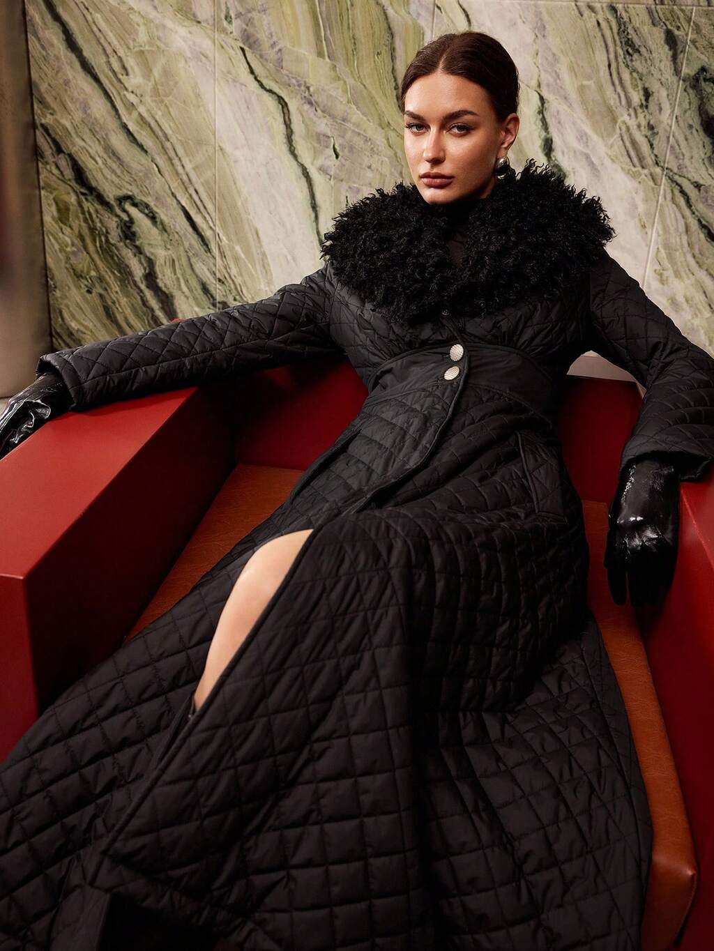 FASHIONABLE WAIST CINCHING VINTAGE STYLE DOUBLE-BREASTED QUILTED COAT, VERSATILE & ELEGANT, AUTUMN/WINTER