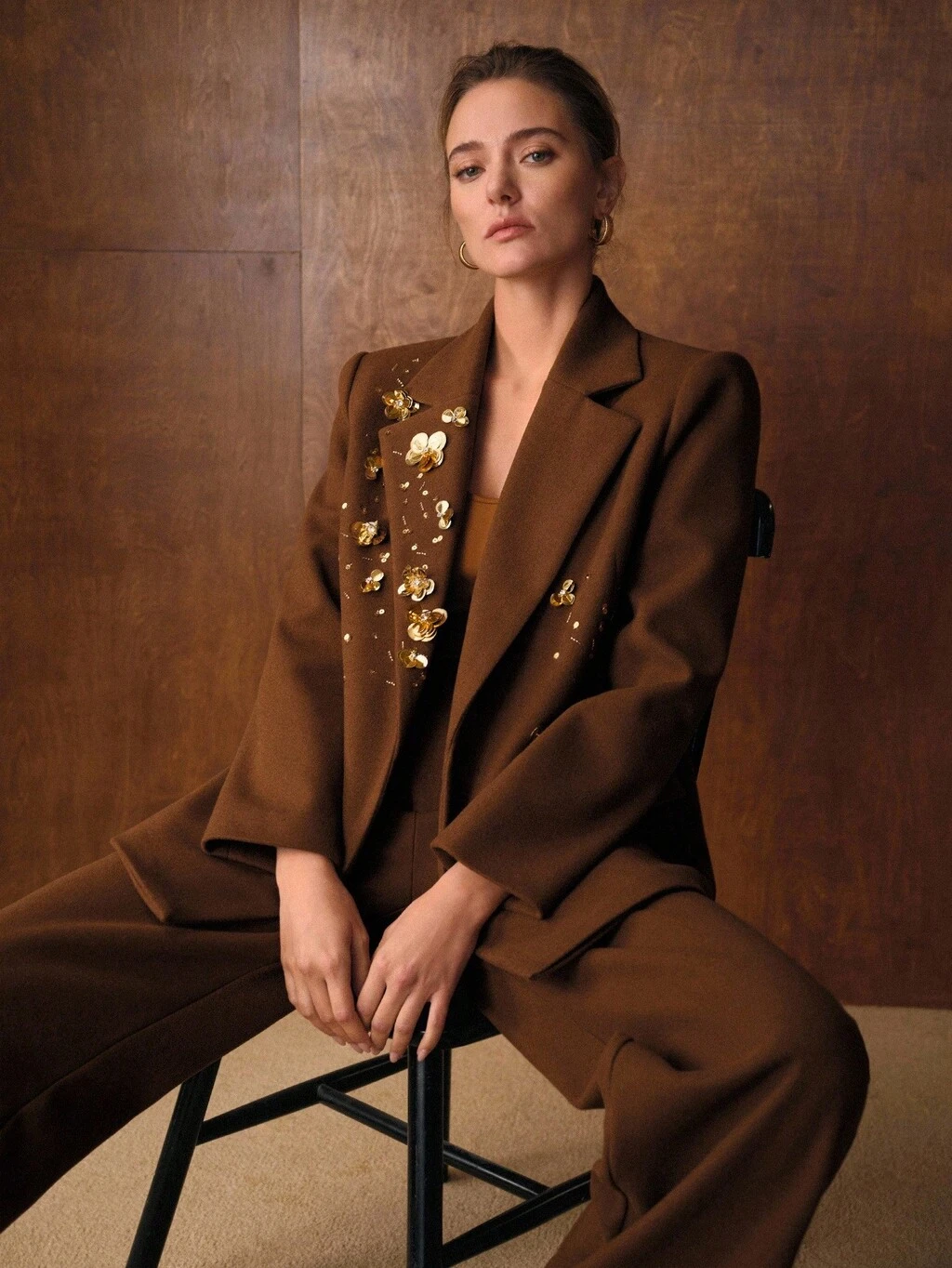 WEŁNIANY PŁASZCZ Z KORALIKOWYMI DETALAMI
