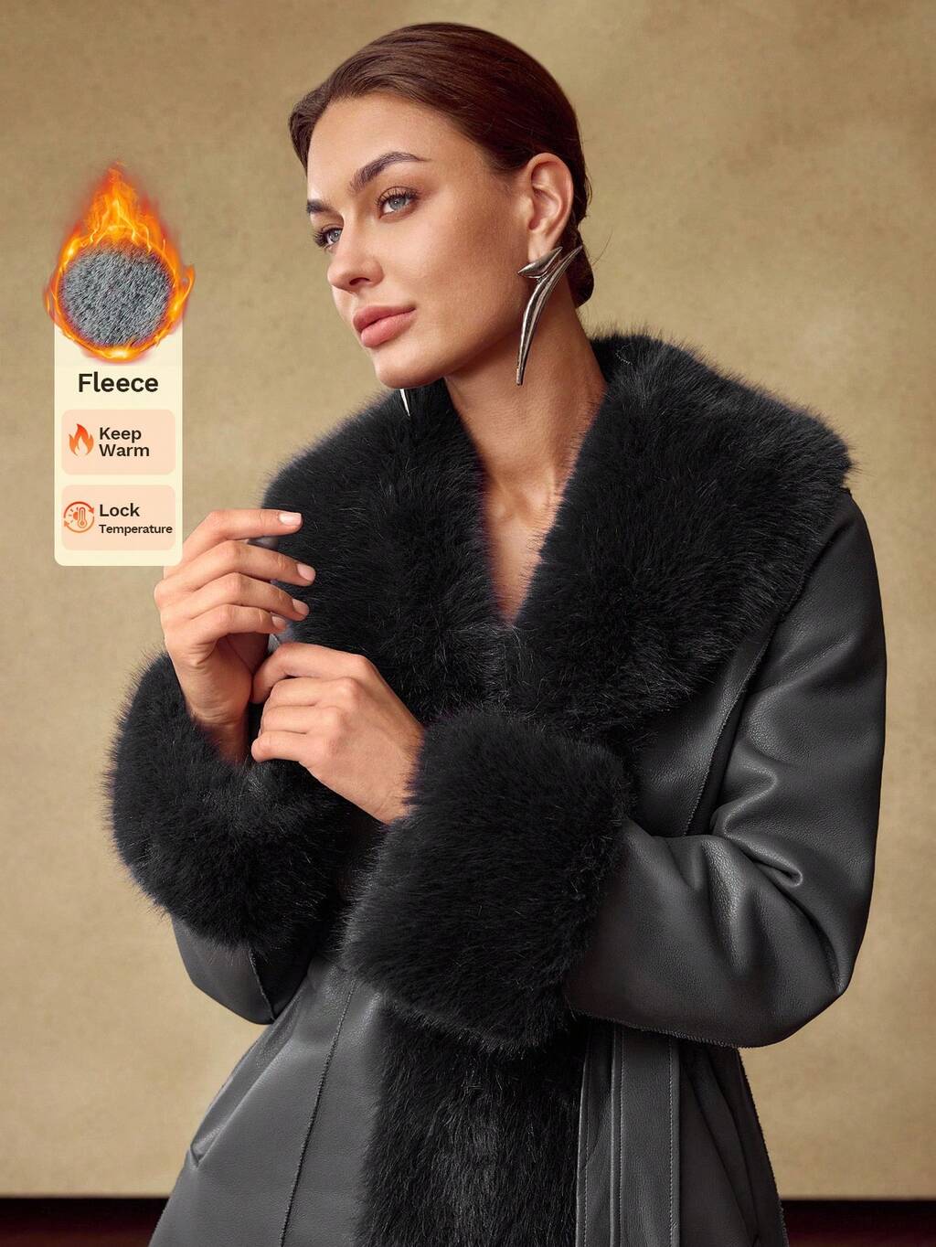 ELEGANT WIDE LAPEL BELTED LOOSE LONG FAUX FUR COAT, AUTUMN/WINTER