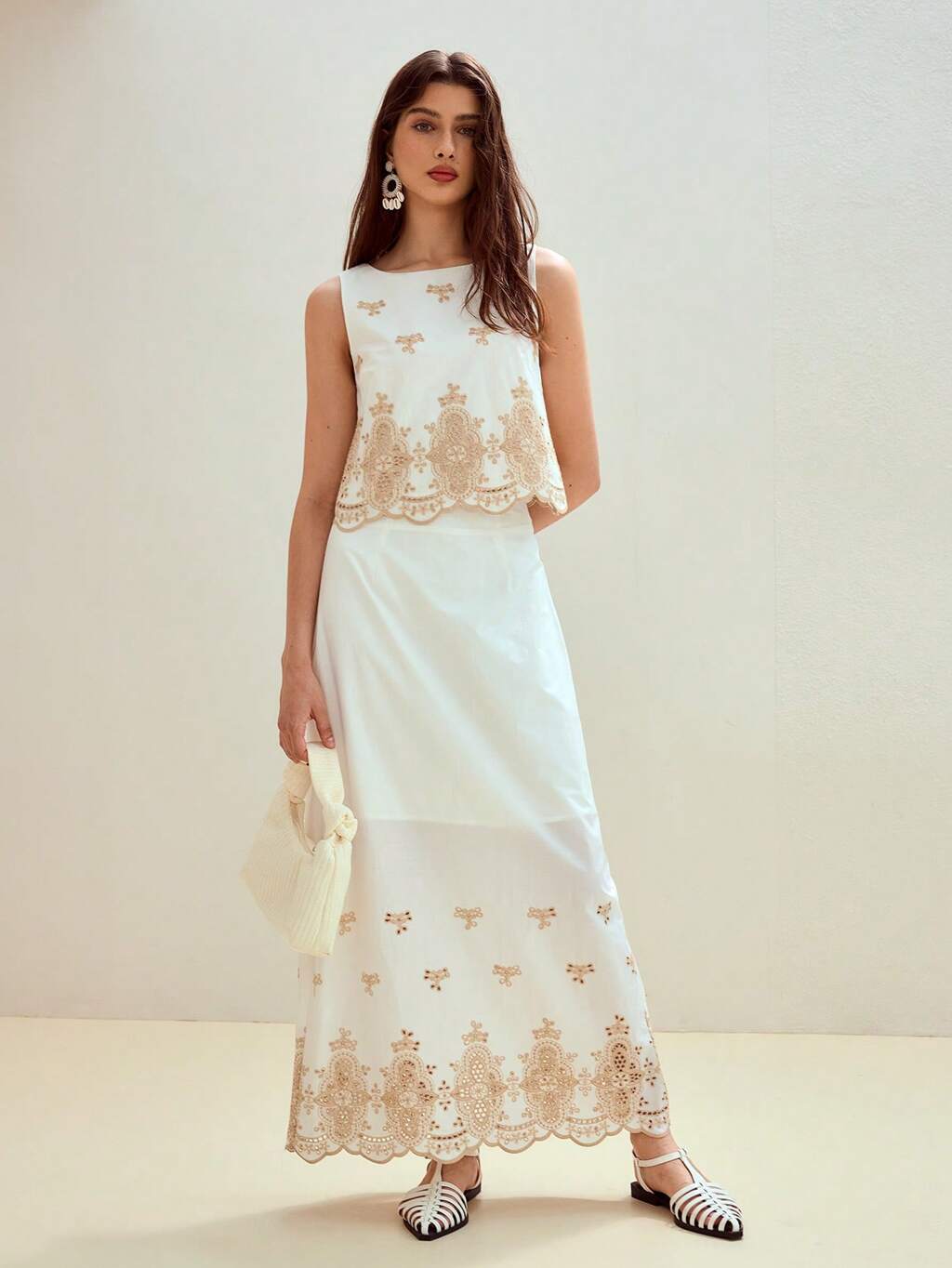 SPRING/SUMMER NEW BEADED EMBROIDERY PATCHWORK FABRIC A-LINE SKIRT, CLASSIC VERSATILE WOMEN'S SKIRT