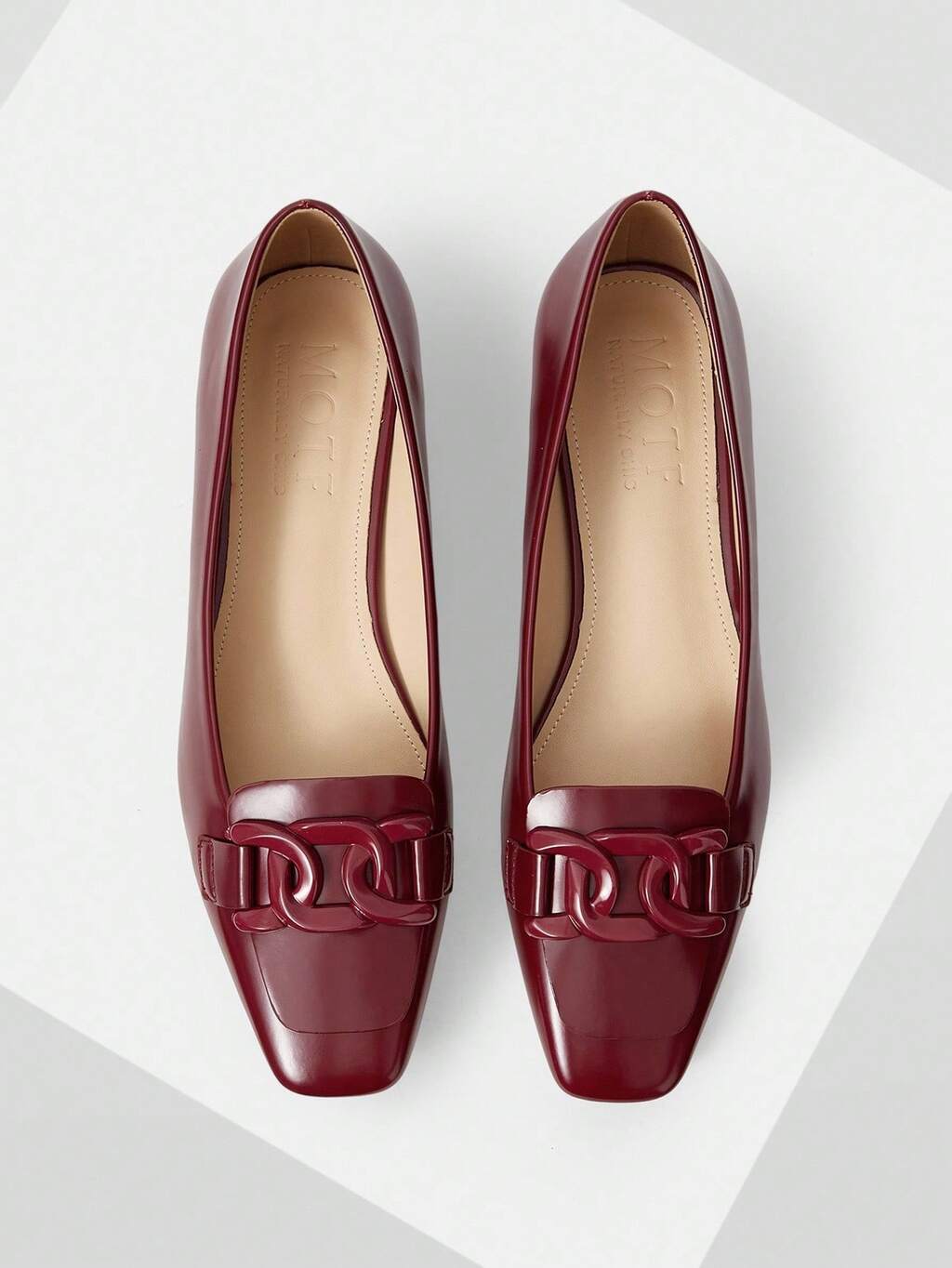 WOMEN'S MINIMALIST BUSINESS CHAIN DECOR LOW BLOCK HEEL PUMPS SPRING SHOES