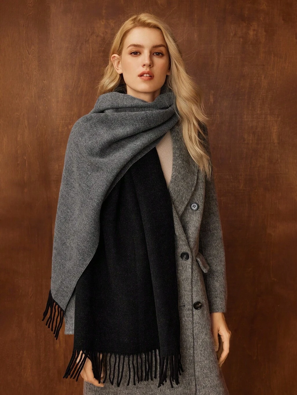 WOMEN SIMPLE COLOR BLOCK FRINGE SCARVES