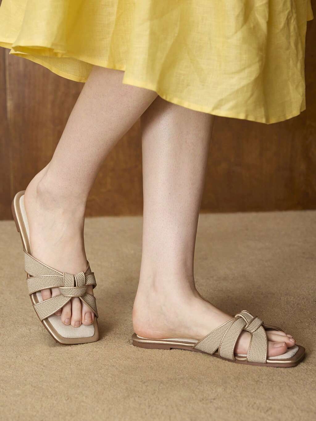 LADIES CHAMPAGNE CASUAL FASHION COMMUTER VACATION WOVEN OPEN-TOED FLAT SANDALS SUMMER SHOES