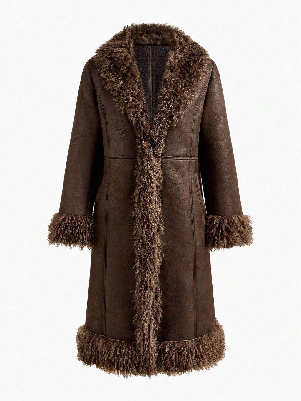 WATERFALL LONG SLEEVE FAUX FUR COAT