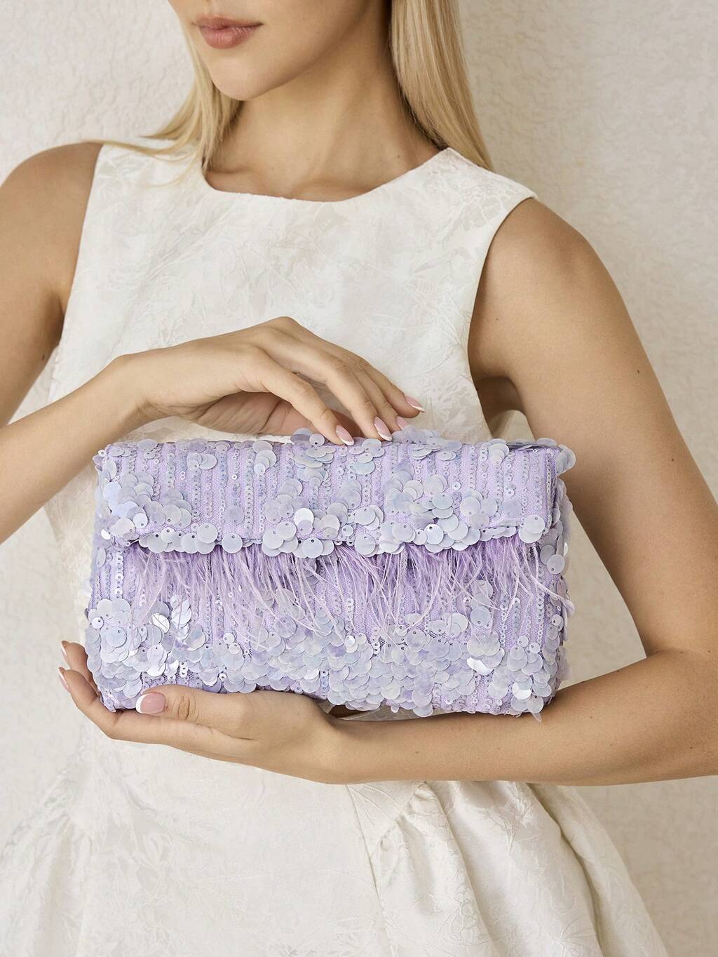 WOMEN'S FASHION SQUARE FAUX FEATHER CLUTCH BAG, VALENTINES, PERFECTLY MATCHING WITH PROM DRESSES, PROM ACCESSORIES,SEQUIN DRESS SPARKLY DRESS