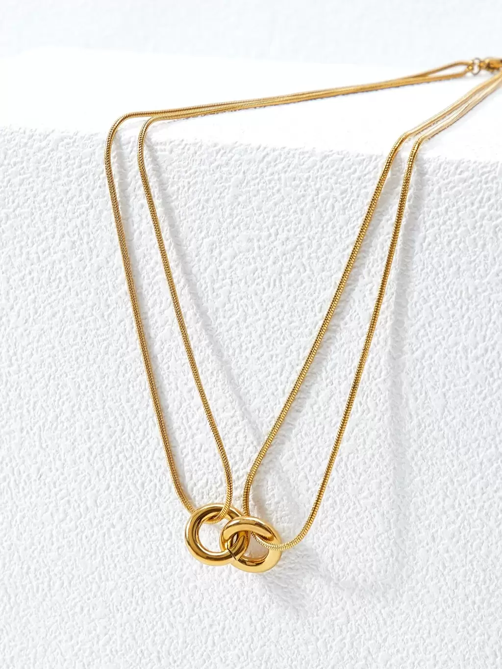 2PCS/SET GOLD PLATED DOUBLE LAYERED PENDANT CHAIN NECKLACE