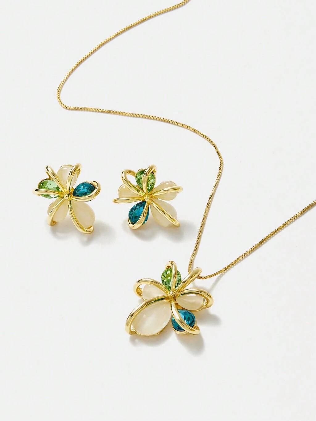 2-PIECE FLORAL EARRINGS & NECKLACE SET