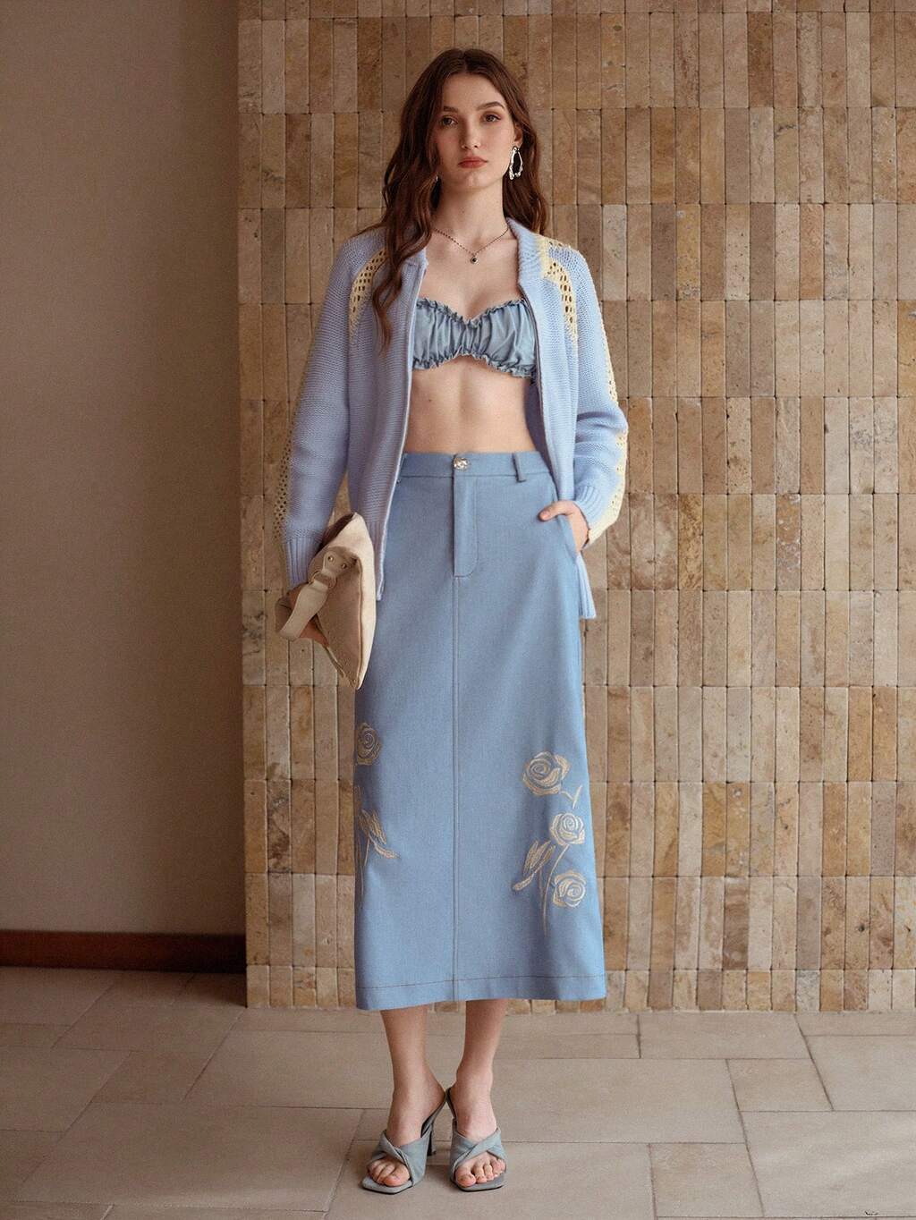 WOMEN'S EMBROIDERED A-LINE SKIRT WITH SPLIT