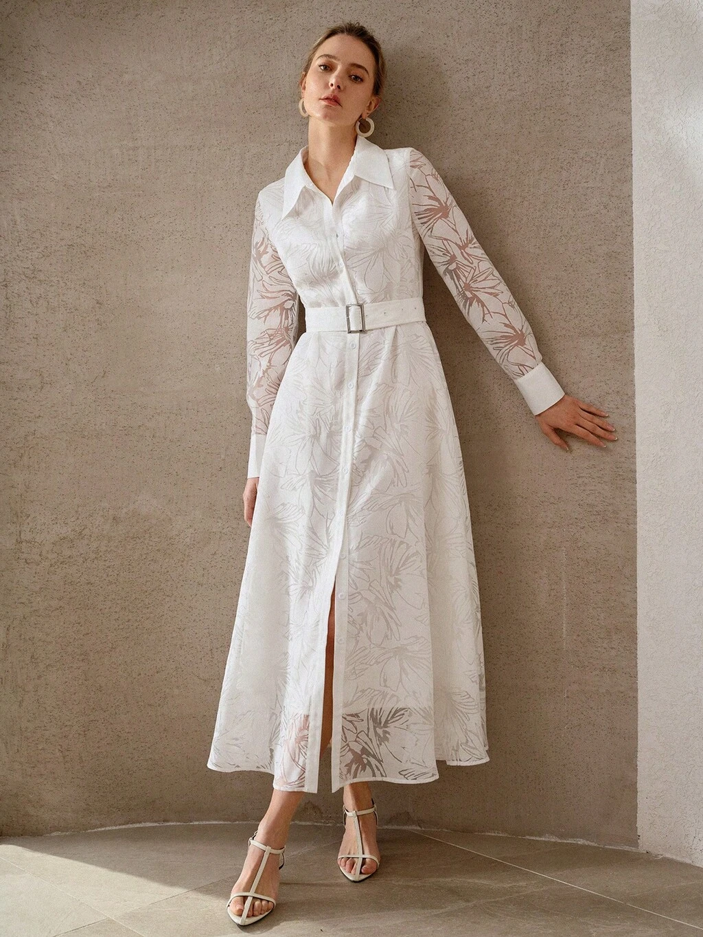 FLORAL PRINT BELTED DRESS