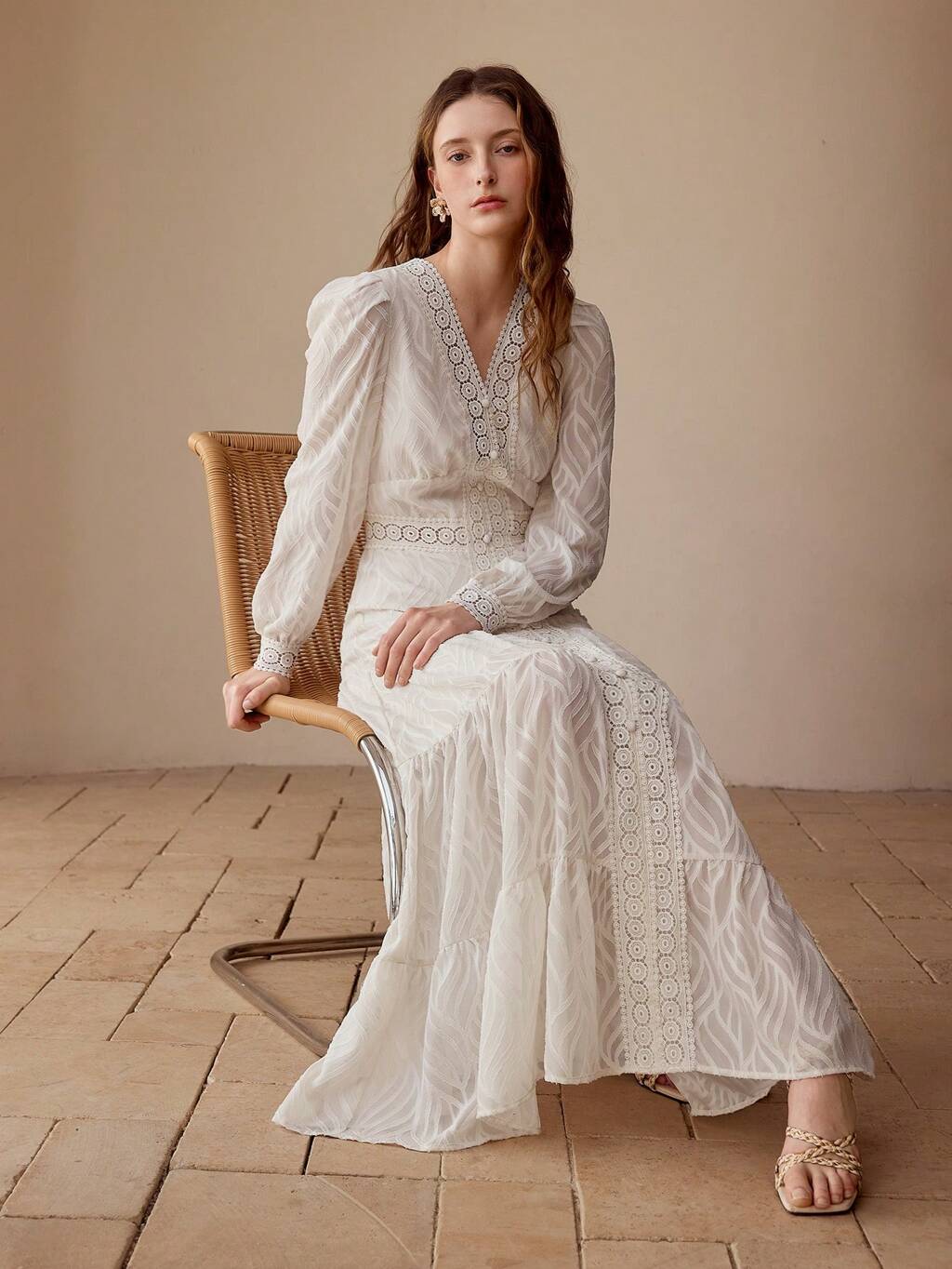 CONTRAST LACE FITTED WAIST DRESS,VALENTINE'S DAY OUTFIT,SPRING/SUMMER