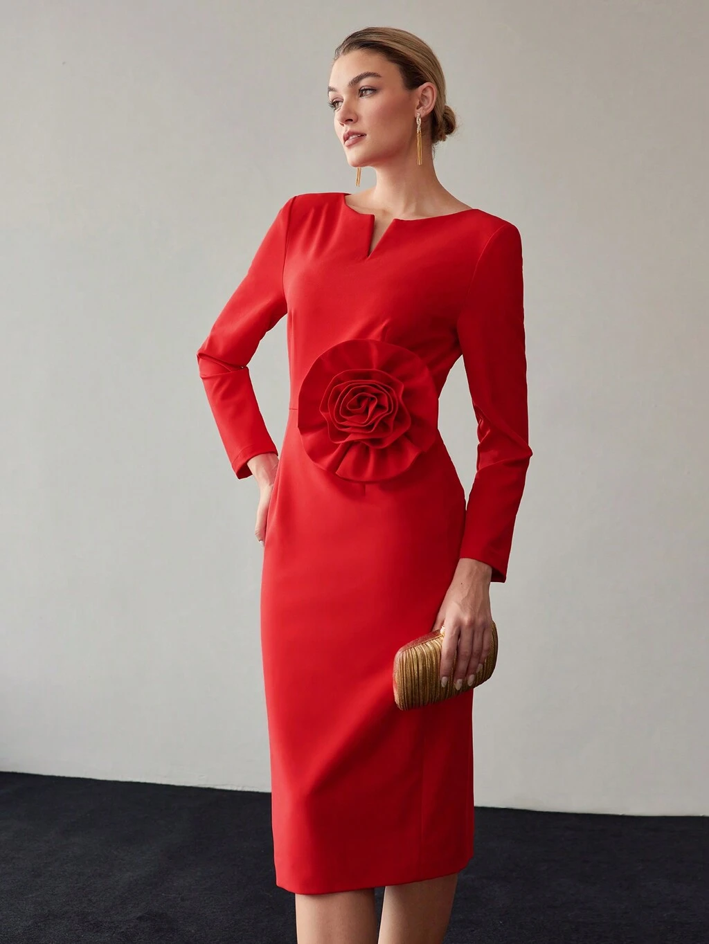FRILL TRIM BOW DECOR MIDI DRESS, WOMEN OUTFIT