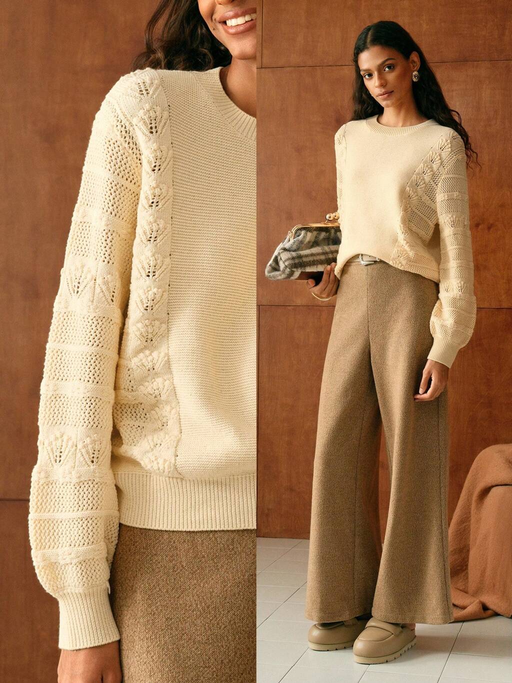 SOLID LAYERED RUFFLE TRIM CABLE KNIT SWEATER