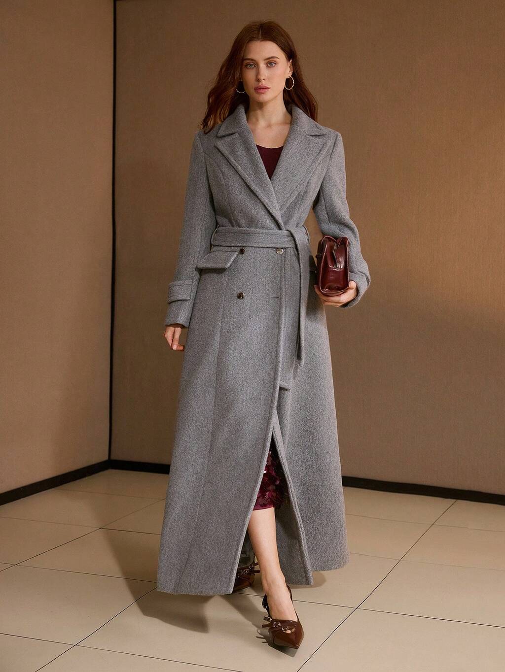 WOMEN DOUBLE BREASTED LAPEL LONG OVERCOAT